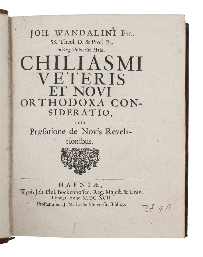 - Hans Wandal: Chiliasmi veteris et novi orthodoxa consideratio. Copenhagen, Bockenhoffer for Liebe, 1692.