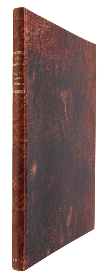 8vo. In recent marbled paper covered boards. In "Det Kongelige Danske Videnskabers-Selskabs Skrifter", vol. 5. Ex-libris to verso of wrappers. Large dampstain to upper outer corner and outer margin. Pp. 17-70.