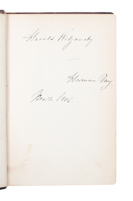 Dedikationseksemplar til Harald Witzansky (1862-1940), "forretningsfører ved dagbladet Politiken, fra 1902 var han redaktør af avisen København, hvortil Bang fra februar 1902 til December 1911 leverede masser af nyskrevne artikler" (Posselt, Bibliofiler 21). Herring, p. 510.