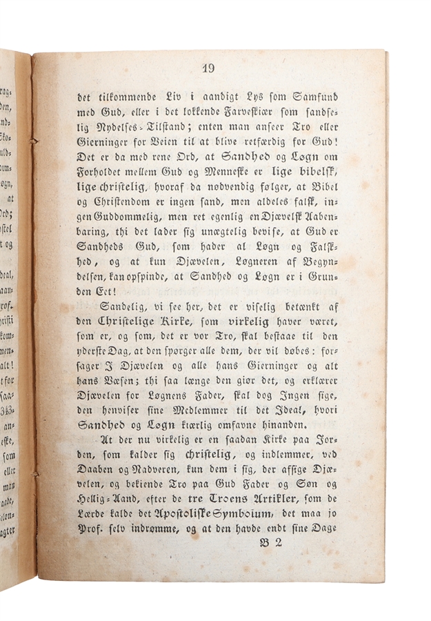 Den yderst sjældne originaludgave af skriftet, der egentlig skulle have været en anmeldelse af professor H. N. Clausens værk "Catholicismens og Protestantismens Kirkeforfatning", men som i stedet blev et egentligt Feidebrev, hvori Grundtvig stærkt injurierende angriber Clausen for hans kirkesyn. Grundtvig tabte den efterfølgende retssag anlagt af Clausen og blev idømt livsvarig censur, der dog blev ophævet i 1837. Pamfletten vakte stor opstandelse i København og blev genoptrykt adskillige gange.