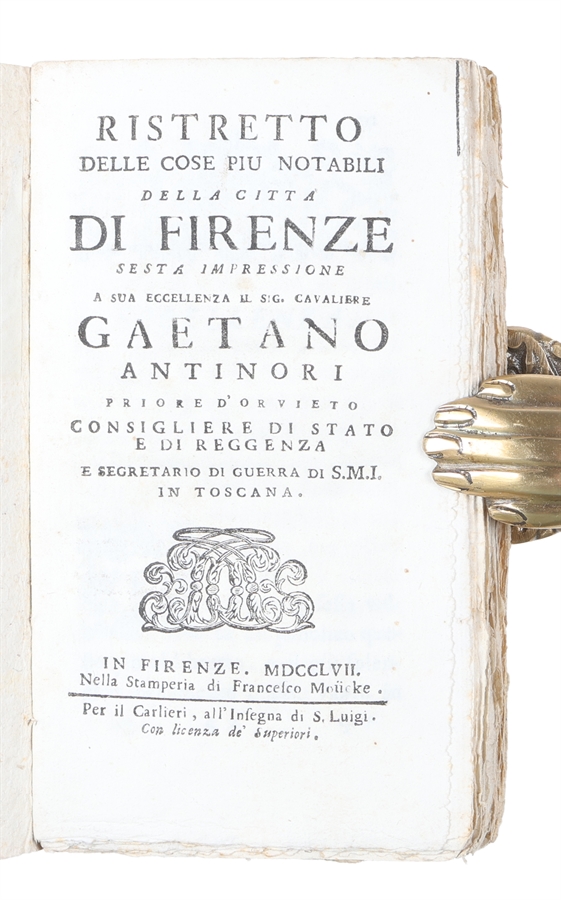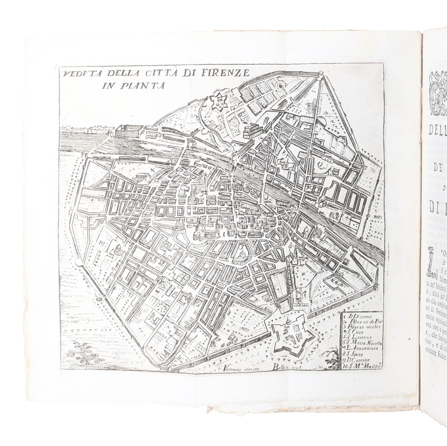 8vo. Uncut in the original interrim boards. Light wear to extremities and some pencil annotations throguhout, but generally a nice copy printed on good paper. XI, (1),226 pp. + 1 folded map of Firenze.