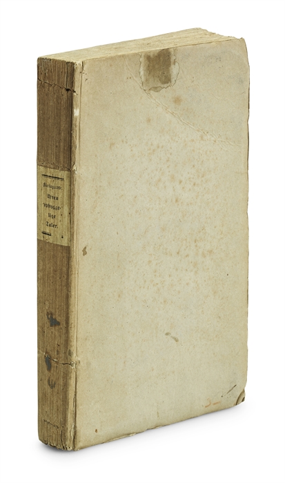 8vo. (4), 52 + 62 (+ 1 blank leaf) + 84 + 59 (including the blank leaf between the title-page and the preface!) + 70 (+ 1 blank leaf) + 111 pp. Completely uncut in the original brownish grey boards with original printed title-label to spine (fully intact). Boards a bit brownspotted and a larger damp stain to top of front board. A couple of smaller stains (lacquer or wax) to spine. A few horizontal creases to spine with paper almost invisibly glued back on to hold tight. Occasional brownspotting, mostly to the first and last leaves. But overall splendidly preserved.